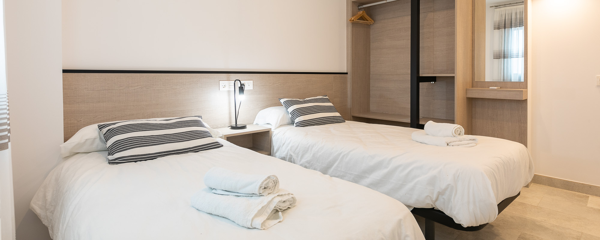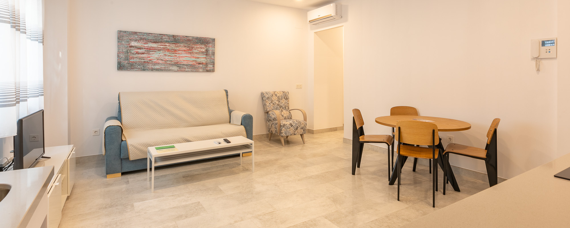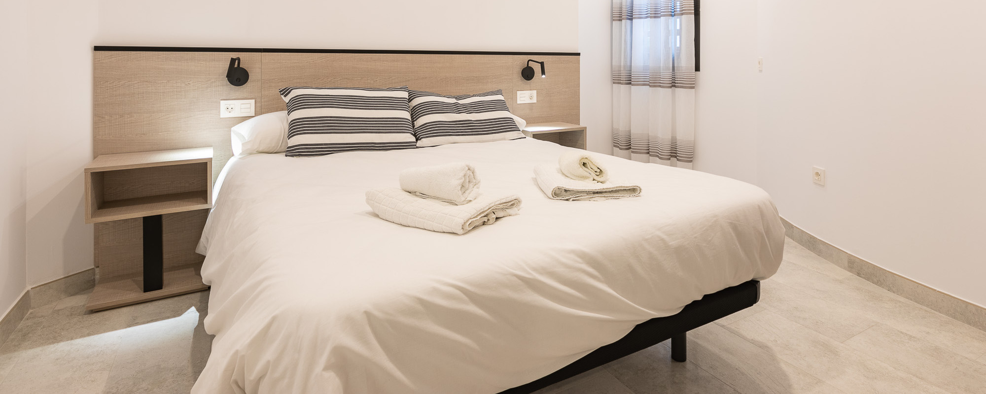 En cuanto a nuestros apartamentos, están equipados con todo el menaje necesario para unas vacaciones sin preocupaciones, aire acondicionado, televisión plana con canales nacionales e internacionales, cocina y terraza propia. Además de por supuesto wifi gratuita, ropa de cama y toallas.